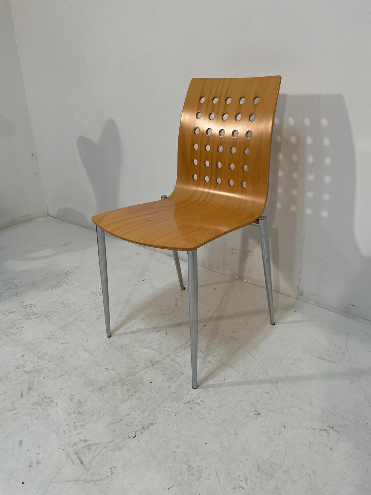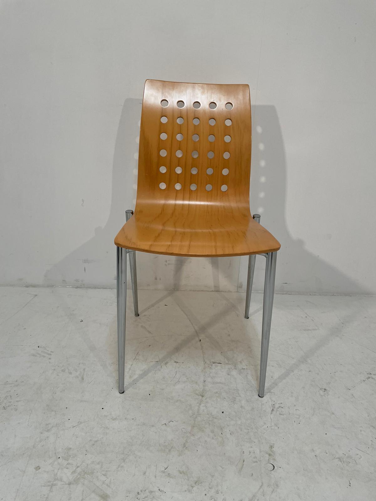 Kantinestoel gebogen houtenzitting
