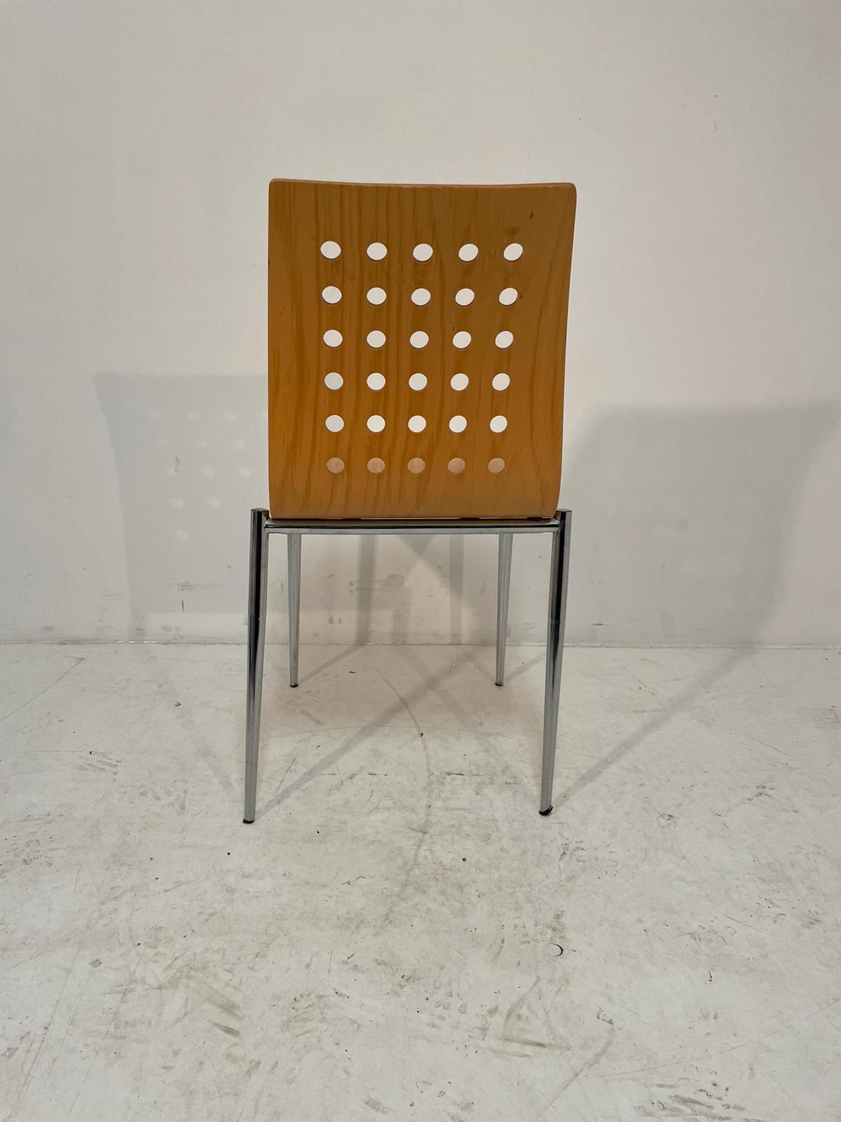 4-poots kantinestoel met gebogen houtenzitting