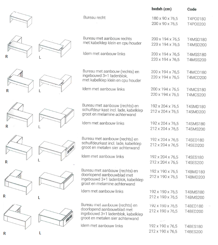 In deze serie is ook een meeting-directie tafel te verkrijgen in diverse afmetingen