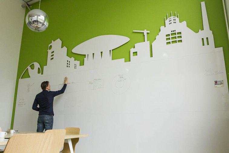 Offerte aanvragen Voorraad op aanvraag Bekijk de specificaties Deze creative whiteborden zijn frameloos en kunnen eindeloos aan elkaar gekoppeld worden met een minimale naad.