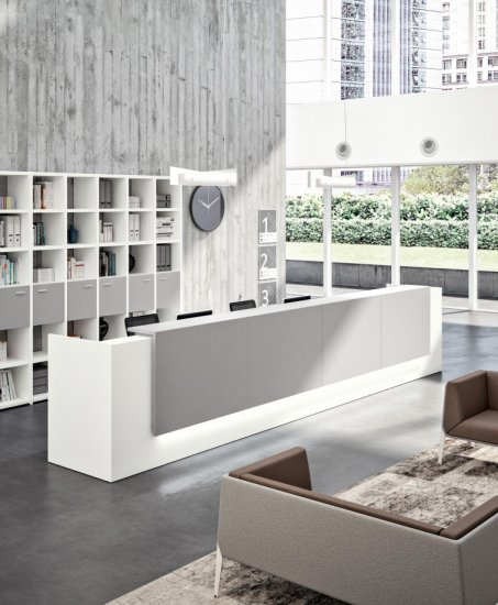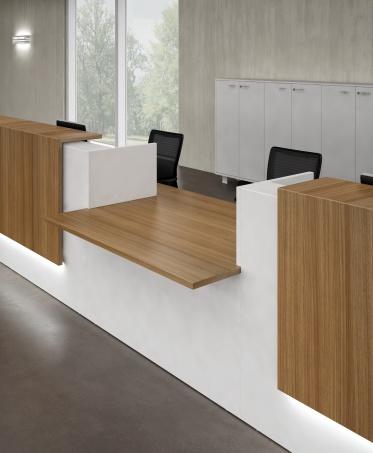 - Balie, zijpanelen, (top)bladen en lage counters in 7 melamine kleuren